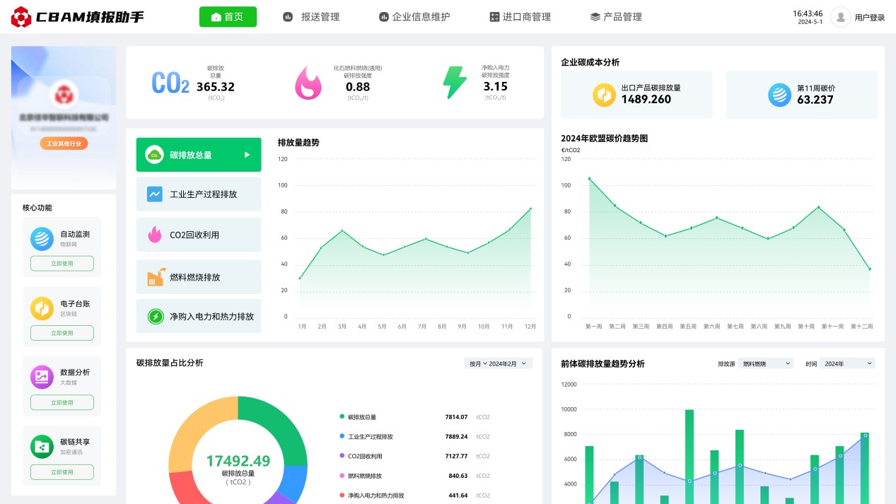2023年10月1日起,歐盟碳邊境調(diào)整機(jī)制(CBAM)已進(jìn)入過渡期,CBAM涵蓋范圍的出口產(chǎn)品需按時(shí)提交產(chǎn)品碳排放報(bào)告,未提交報(bào)告的企業(yè)將面臨高額處罰。為解決企業(yè)由于官方政策文件理解難度大,專業(yè)門檻高,數(shù)據(jù)搜集難度大,部分?jǐn)?shù)據(jù)缺失無法填等困擾,推出碳關(guān)稅管理平臺(CBAM填報(bào)助手),通過數(shù)字化方式,為企業(yè)提供碳數(shù)據(jù)填報(bào)、碳數(shù)據(jù)核算、碳數(shù)據(jù)報(bào)送、碳數(shù)據(jù)認(rèn)證、咨詢培訓(xùn)等全流程服務(wù)??蓸O大減少企業(yè)碳排放報(bào)送門檻,助力企業(yè)低成本合規(guī)報(bào)送碳排放數(shù)據(jù)。